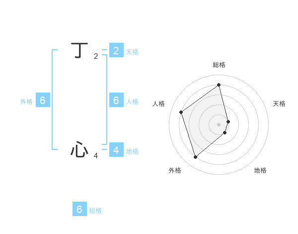 丁 心さんの総格は6画の4点!