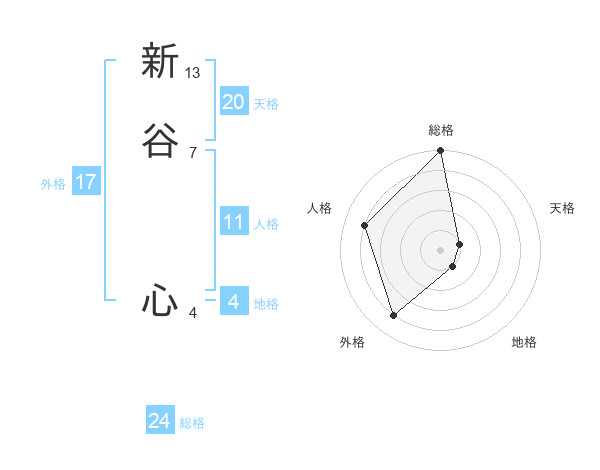 新谷 心さんの外格は17画の4点!