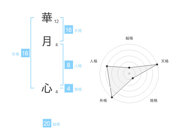 華月 心さんの外格は16画の5点!