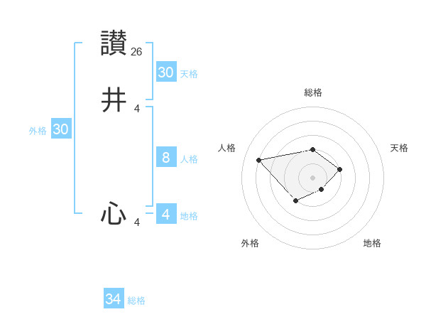讃井 心さんを姓名の画数から五運を鑑定