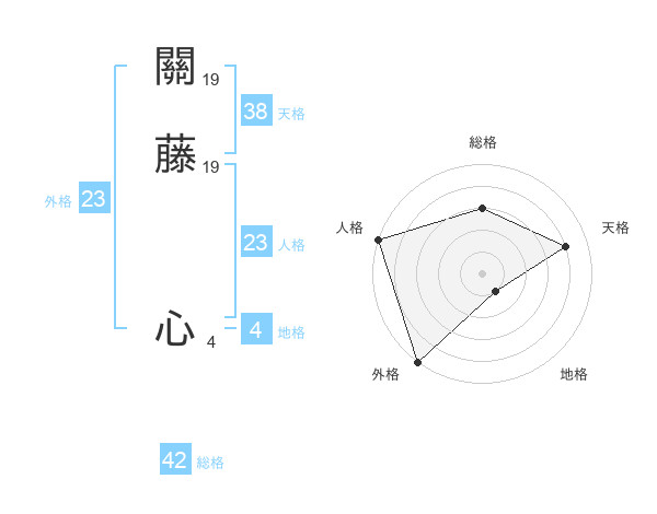關藤 心さんの天格は38画の4点!