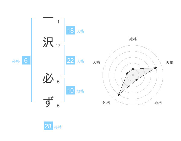一沢 必ずさんの総格は28画の1点!