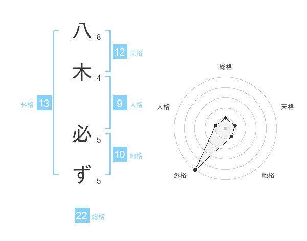 八木 必ずさんの外格は13画の5点!