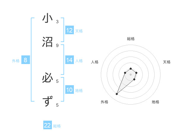 小沼 必ずさんの天格は12画の1点!