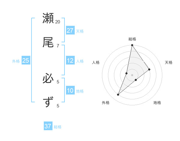瀬尾 必ずさんを姓名の画数から五運を鑑定