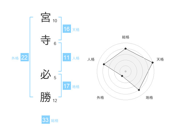 宮寺 必勝さんを姓名の画数から五運を鑑定