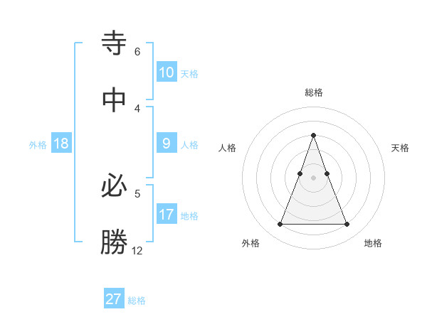 寺中 必勝さんを姓名の画数から五運を鑑定