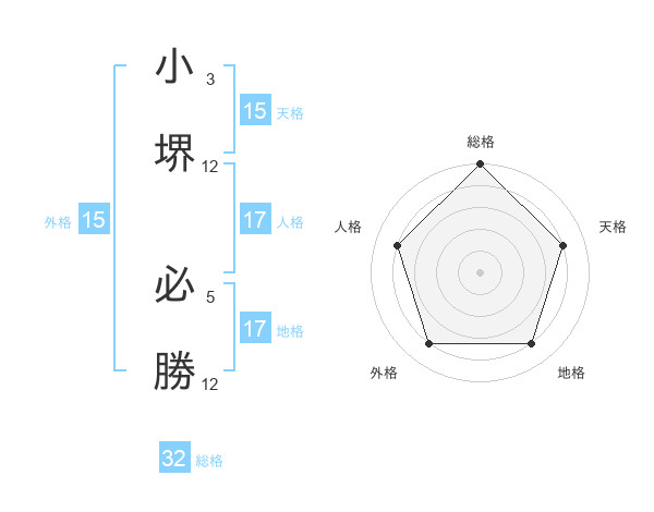 小堺 必勝さんの総格は32画の5点!