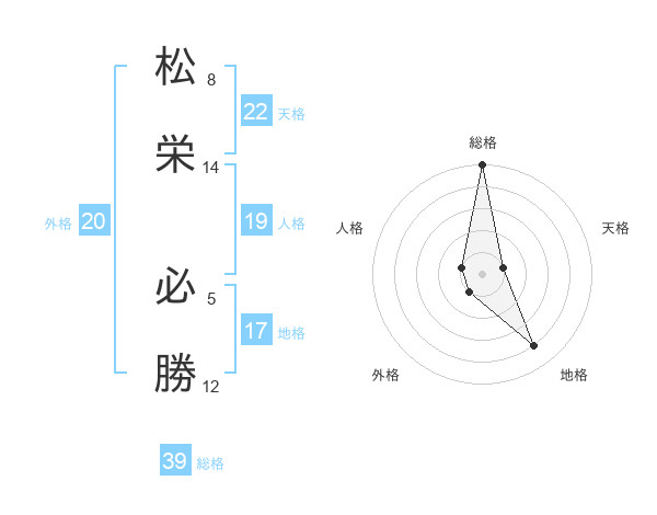 松栄 必勝さんを姓名の画数から五運を鑑定