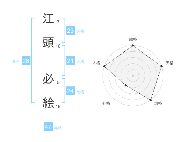 江頭 必絵さんを姓名の画数から五運を鑑定