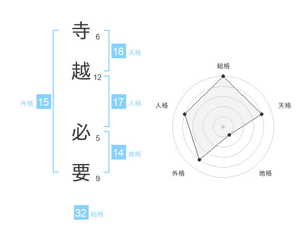 寺越 必要さんの天格は18画の4点!