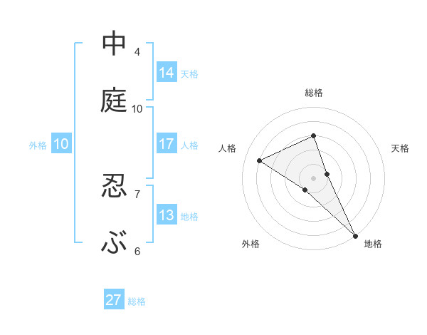 中庭 忍ぶさんの地格は13画の5点!