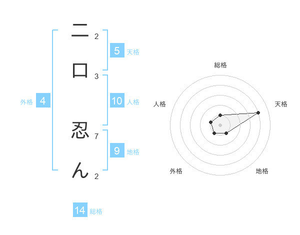 二口 忍んさんの天格は5画の4点!