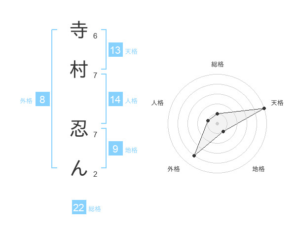 寺村 忍んさんの天格は13画の5点!