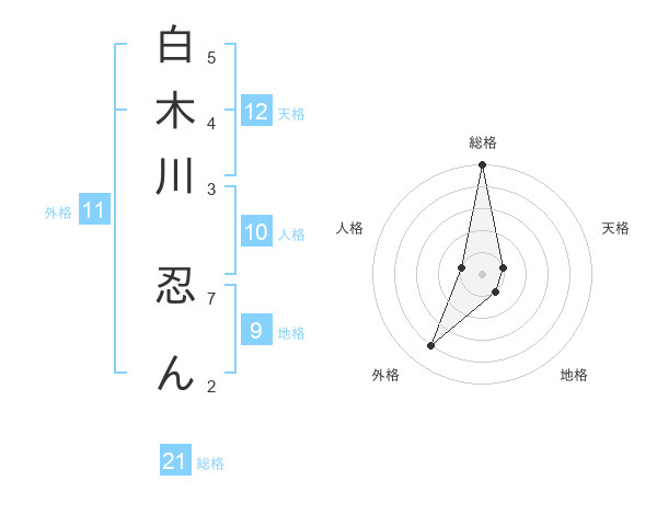 白木川 忍んさんを姓名の画数から五運を鑑定