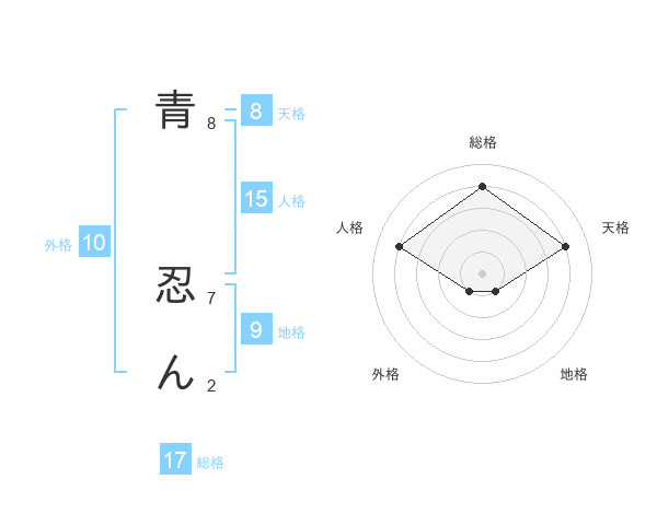 青 忍んさんの総格は17画の4点!