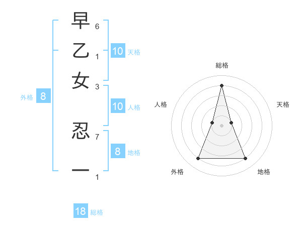 早乙女 忍一さんの外格は8画の4点!