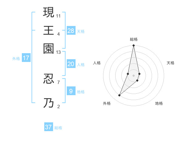 現王園 忍乃さんを姓名の画数から五運を鑑定