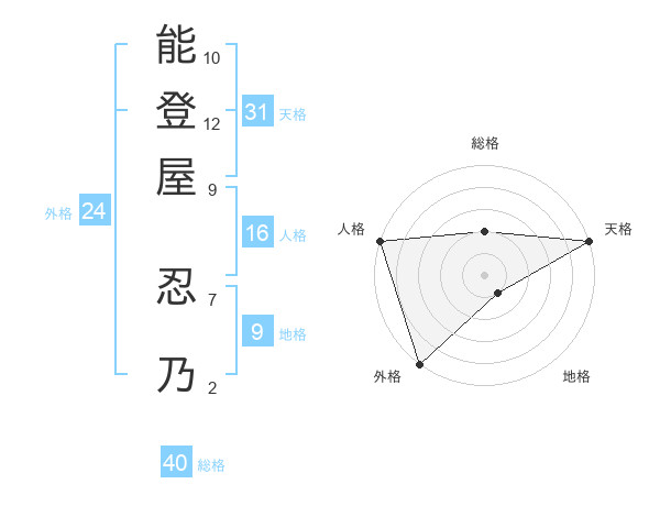 能登屋 忍乃さんを姓名の画数から五運を鑑定