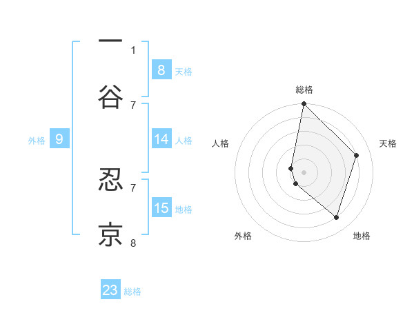 一谷 忍京さんを姓名の画数から五運を鑑定