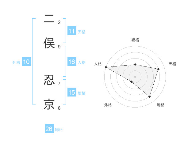 二俣 忍京さんの総格は26画の2点!