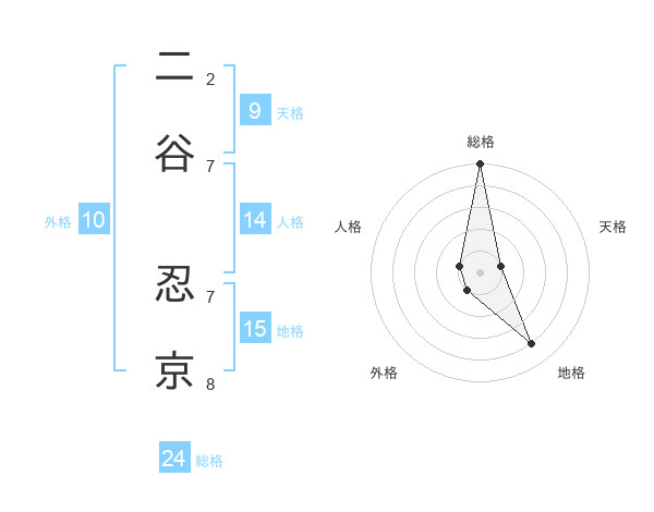 二谷 忍京さんの総格は24画の5点!