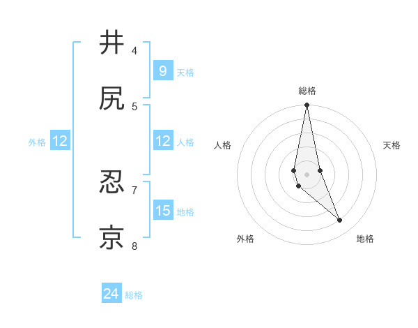 井尻 忍京さんを姓名の画数から五運を鑑定