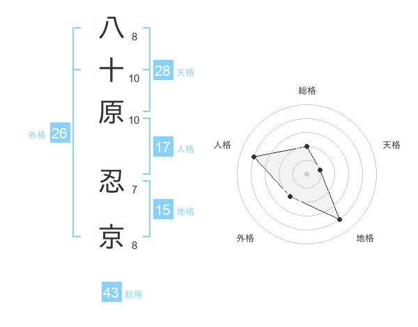 八十原 忍京さんの総格は43画の2点!