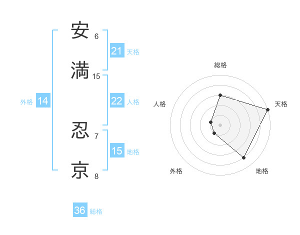 安満 忍京さんの天格は21画の5点!