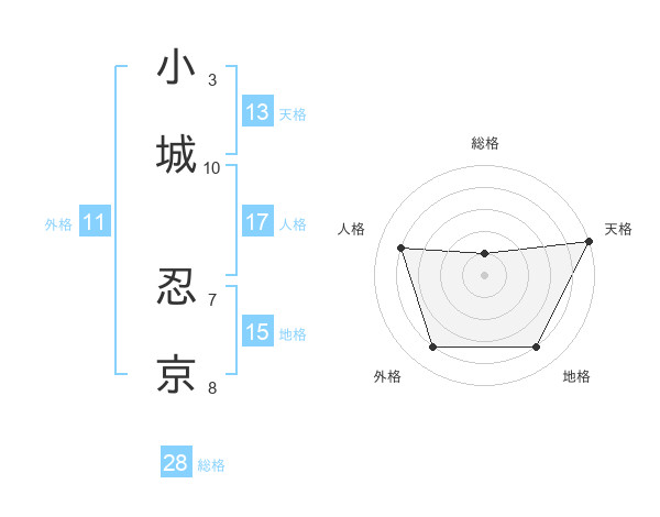 小城 忍京さんの総格は28画の1点!