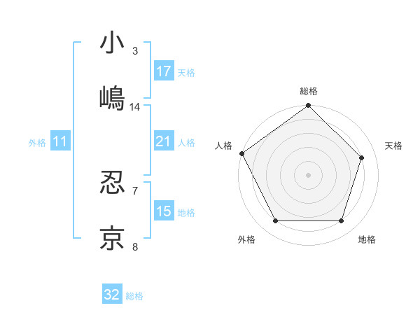 小嶋 忍京さんの総格は32画の5点!