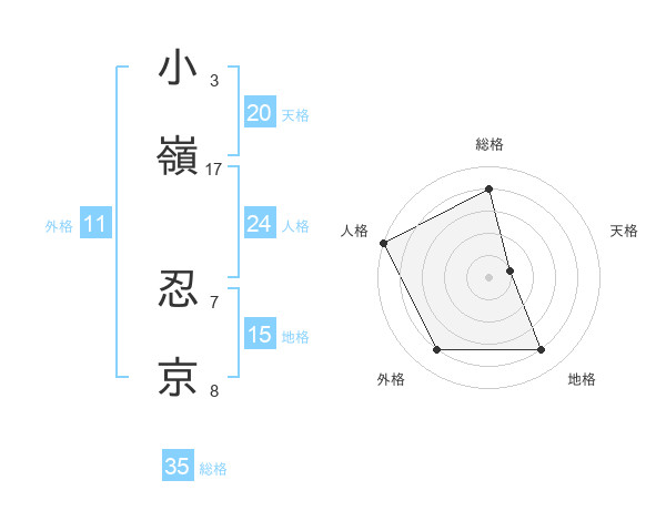 小嶺 忍京さんの天格は20画の1点!