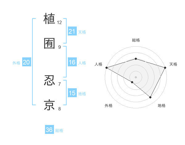 植囿 忍京さんを姓名の画数から五運を鑑定
