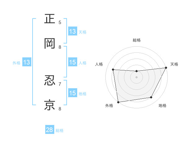 正岡 忍京さんを姓名の画数から五運を鑑定