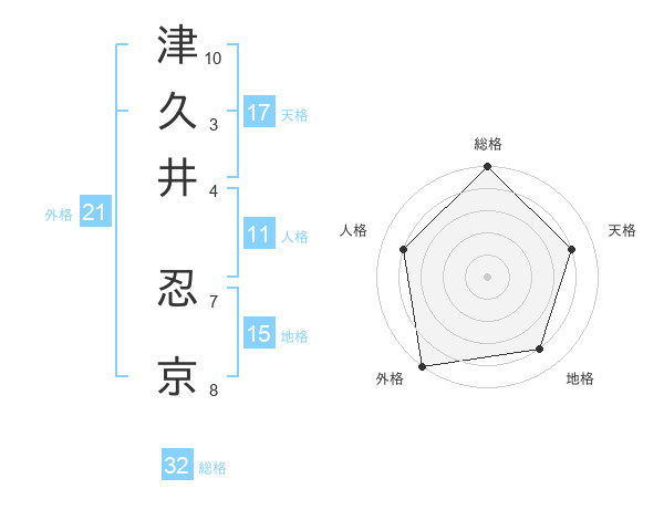 津久井 忍京さんを姓名の画数から五運を鑑定