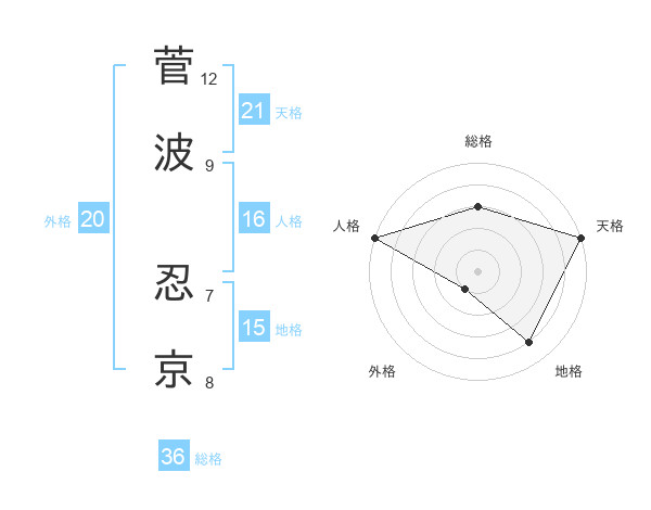 菅波 忍京さんを姓名の画数から五運を鑑定