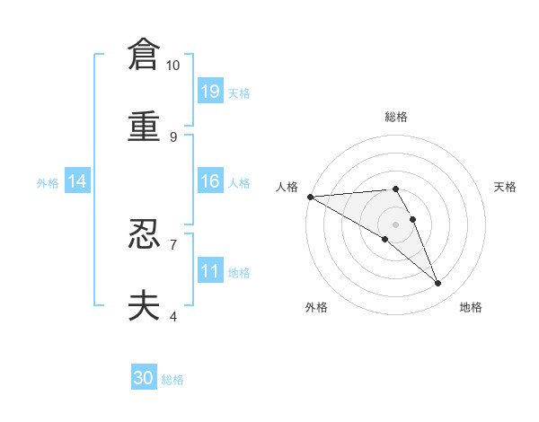 倉重 忍夫さんを姓名の画数から五運を鑑定