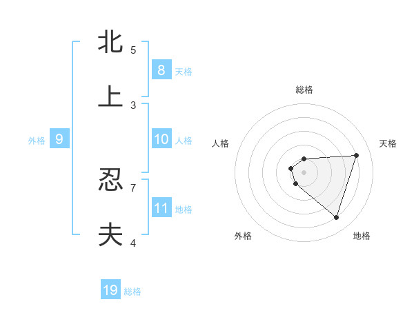 北上 忍夫さんを姓名の画数から五運を鑑定