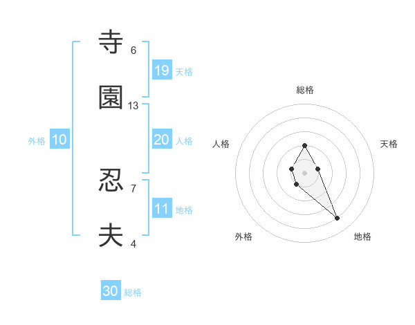 寺園 忍夫さんを姓名の画数から五運を鑑定