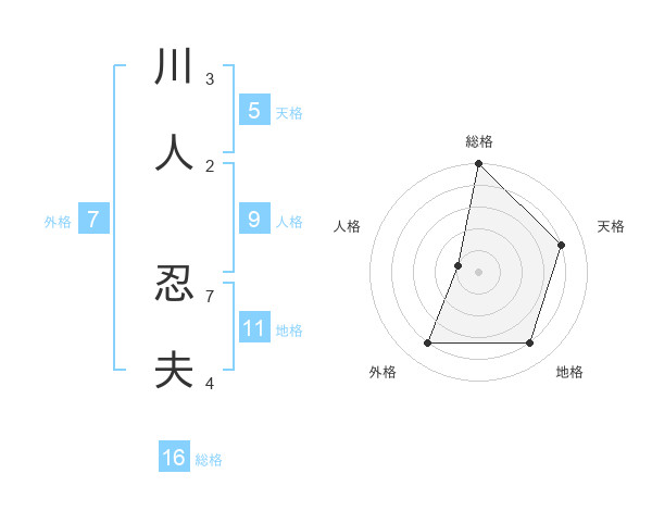 川人 忍夫さんの天格は5画の4点!