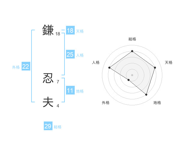 鎌 忍夫さんの総格は29画の4点!