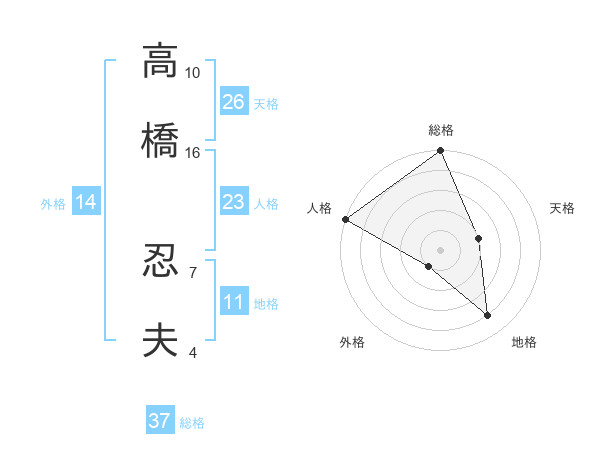 高橋 忍夫さんを姓名の画数から五運を鑑定