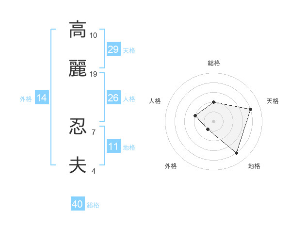 高麗 忍夫さんを姓名の画数から五運を鑑定