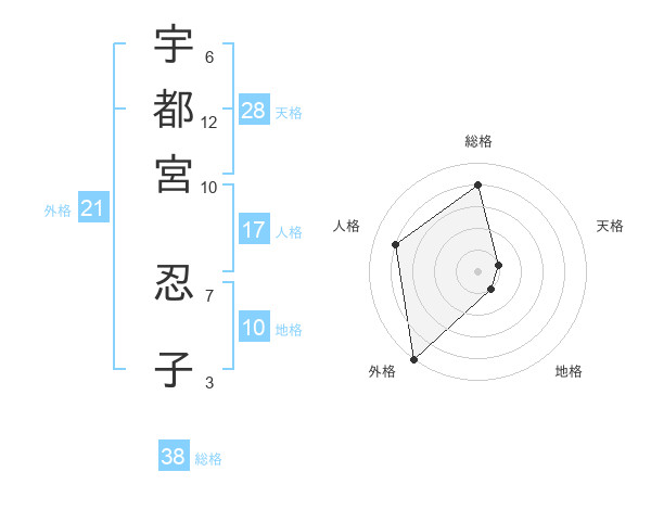 宇都宮 忍子さんを姓名の画数から五運を鑑定