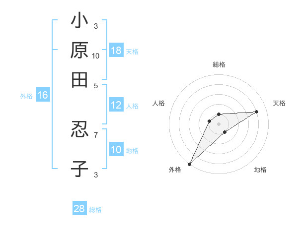 小原田 忍子さんの外格は16画の5点