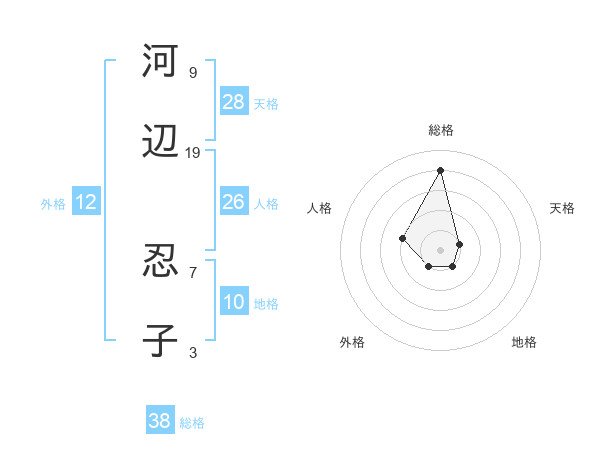 河辺 忍子さんの総格は38画の4点!