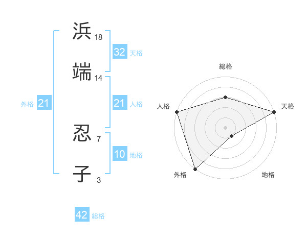 浜端 忍子さんを姓名の画数から五運を鑑定