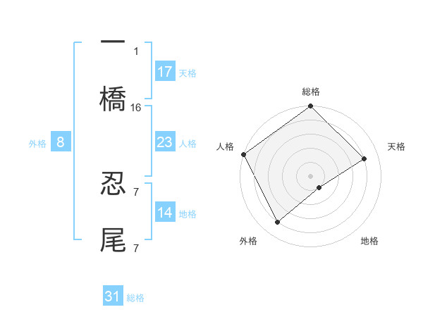 一橋 忍尾さんを姓名の画数から五運を鑑定