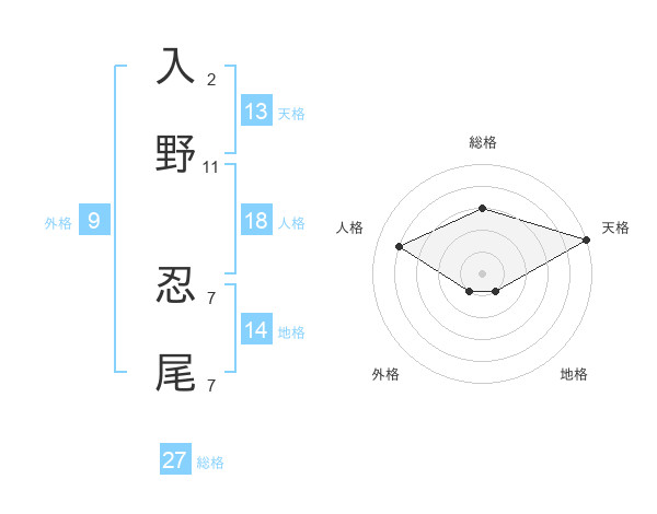 入野 忍尾さんを姓名の画数から五運を鑑定