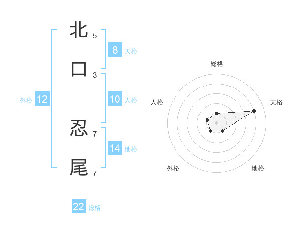 北口 忍尾さんの総格は22画の1点!